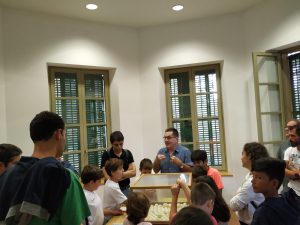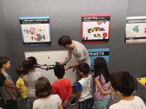 Els membres del MMACA (Museu de les Matemàtiques de Catalunya) van rebre’ns amb els braços oberts, oferint-nos dues visites simultànies, on tant els menuts, com els menys menuts, vam poder tocar els conceptes matemàtics i estadístics de la mà d’en Gabi i l’Enric.