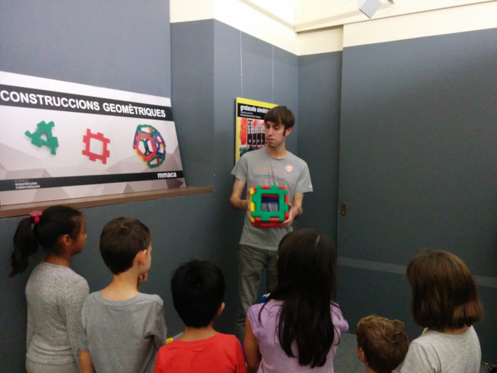 Els membres del MMACA (Museu de les Matemàtiques de Catalunya) van rebre’ns amb els braços oberts, oferint-nos dues visites simultànies, on tant els menuts, com els menys menuts, vam poder tocar els conceptes matemàtics i estadístics de la mà d’en Gabi i l’Enric.